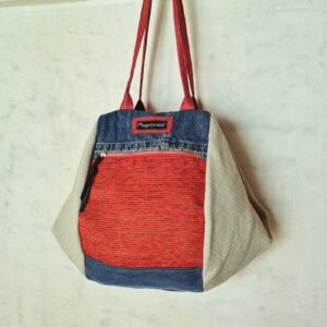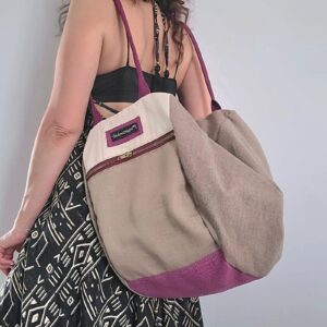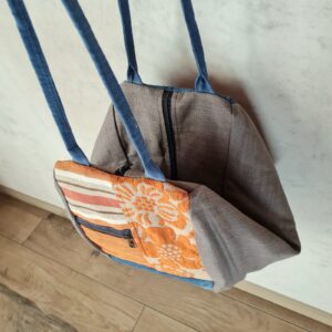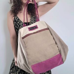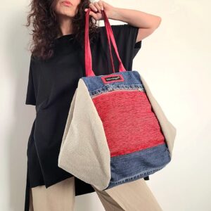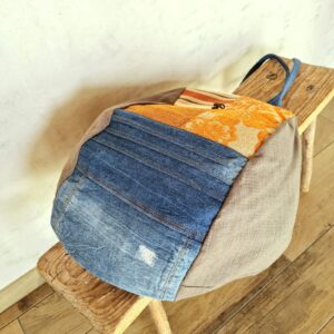 La sua particolarità? Una grande sacca morbida che si chiude piegandosi, un vecchio modello rivisitato con i nostri tessuti. Le due facce frontali sono diverse tra loro, decidi tu da che parte indossarla!