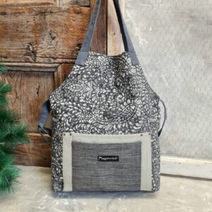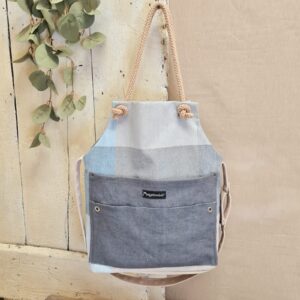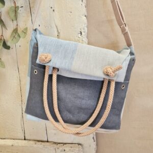 Doppio manico in corda, tracolla regolabile e chiusura totale con zip.