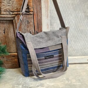 Quando è portata a tracolla e piegata sul davanti misura larga sempre 41 cm, alta 29 cm.